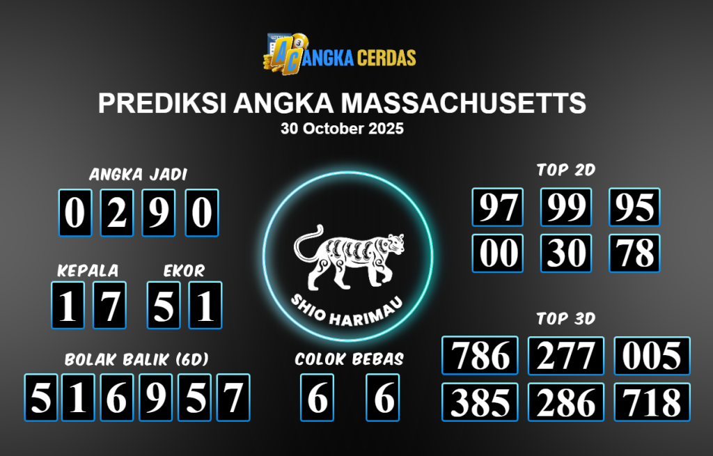 Prediksi Togel MASSACHUSETTS untuk hari ini Kamis 30 Oktober 2025, adalah salah