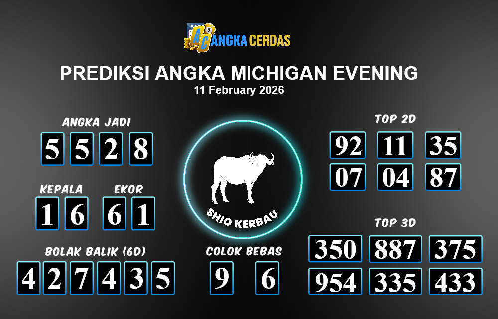 Prediksi Togel MICHIGAN EVENING untuk hari ini Rabu, 11 Februari 2026, adalah salah