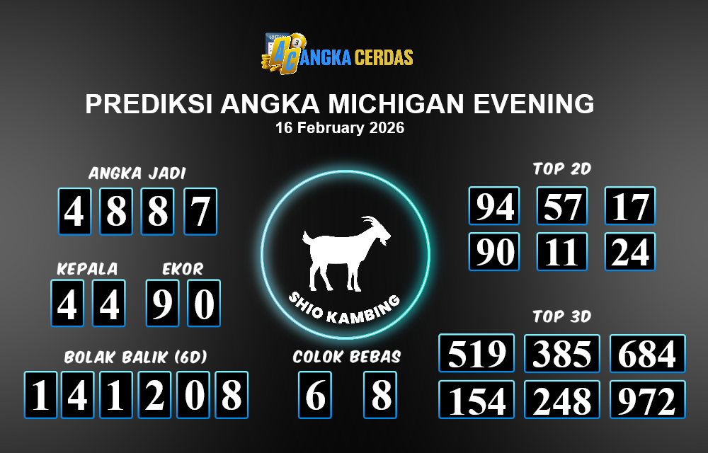 Prediksi Togel MICHIGAN EVENING untuk hari ini Senin, 16 Februari 2026, adalah salah