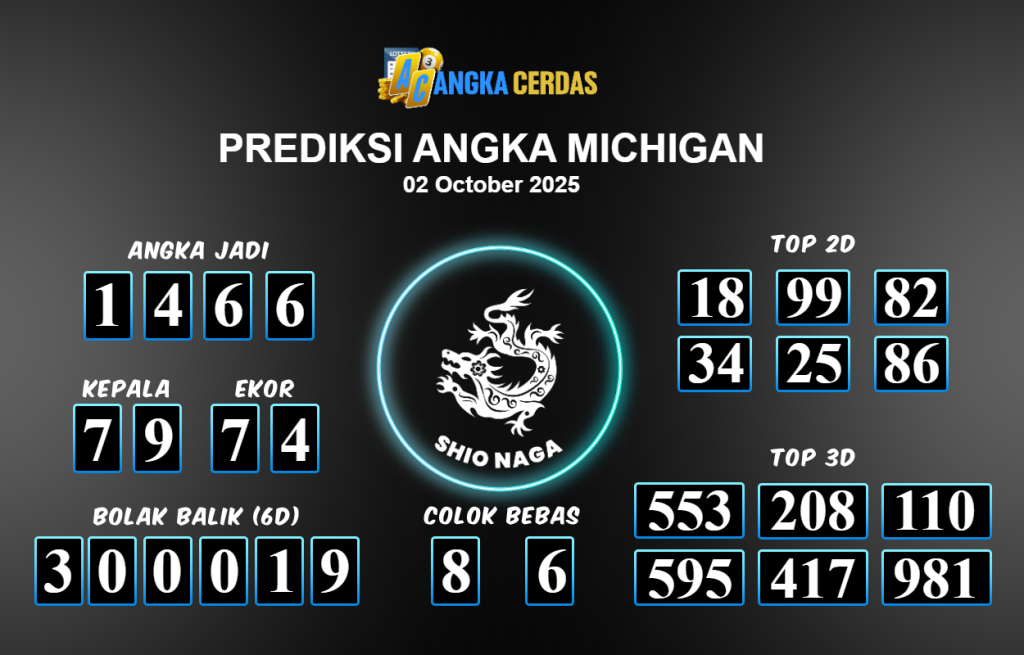 Prediksi Togel MICHIGAN untuk hari ini Kamis 02 Oktober 2025, adalah salah