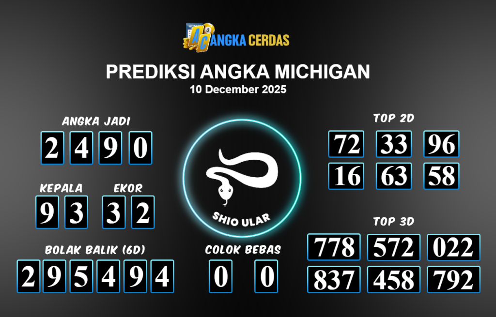 Prediksi Togel MICHIGAN untuk hari ini Rabu 10 Desember November 2025, adalah salah