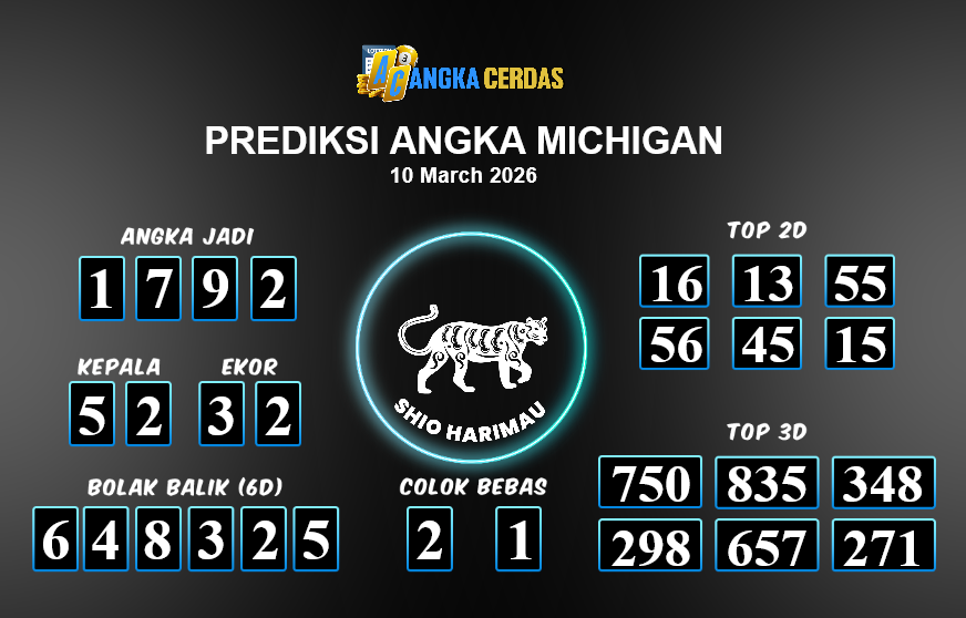 Prediksi Togel MICHIGAN untuk hari ini Selasa, 10 Maret 2026, adalah salah