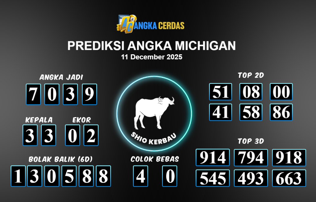 Prediksi Togel MICHIGAN untuk hari ini Kamis 11 Desember November 2025, adalah salah