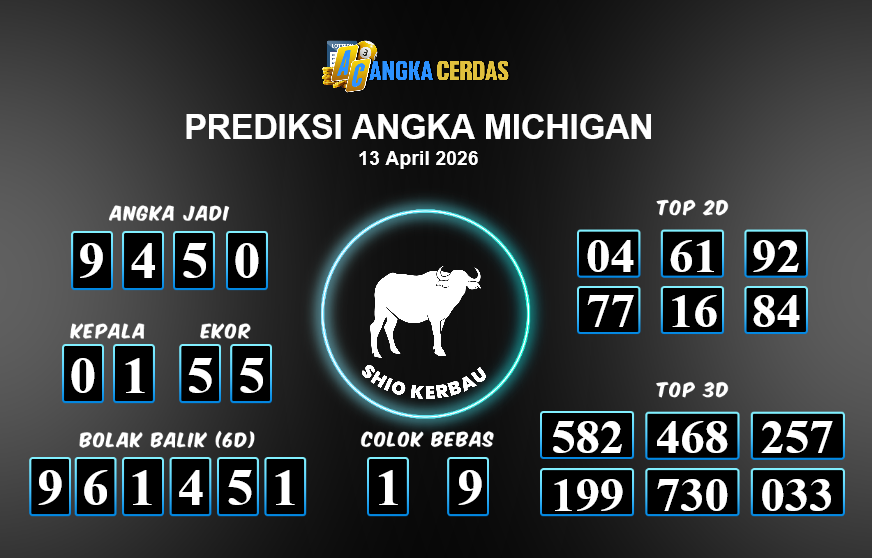 Prediksi Togel MICHIGAN untuk hari ini Senin, 13 April 2026, adalah salah