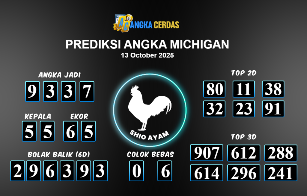 Prediksi Togel MICHIGAN untuk hari ini Senin 13 Oktober 2025, adalah salah