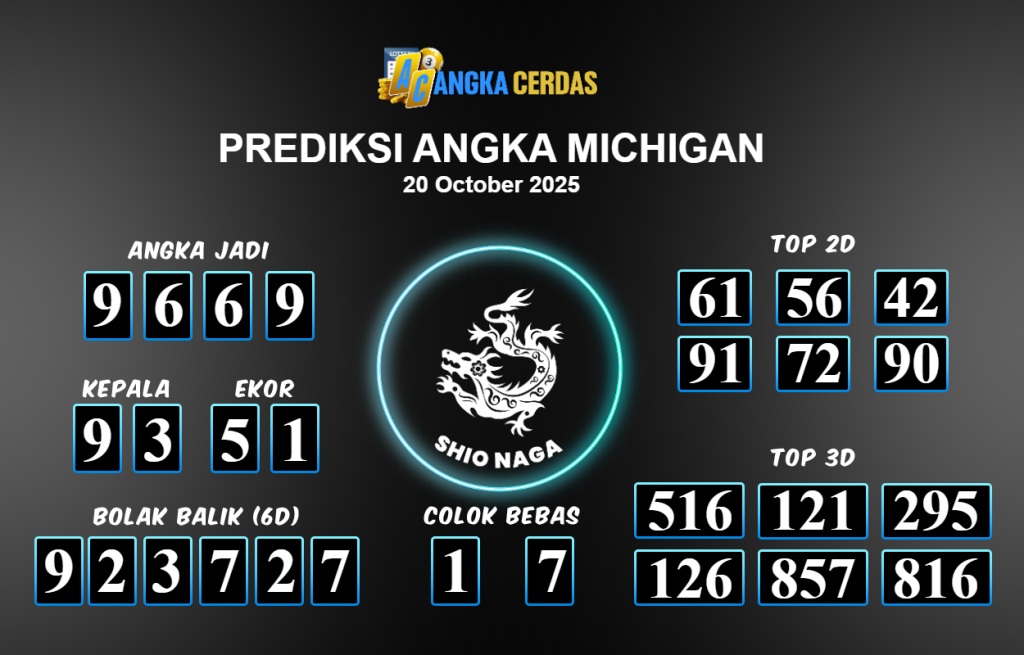 Prediksi Togel MICHIGAN untuk hari ini Senin 20 Oktober 2025, adalah salah