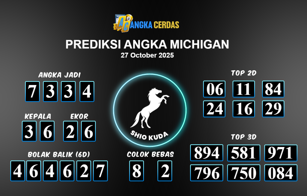 Prediksi Togel MICHIGAN untuk hari ini Senin 27 Oktober 2025, adalah salah