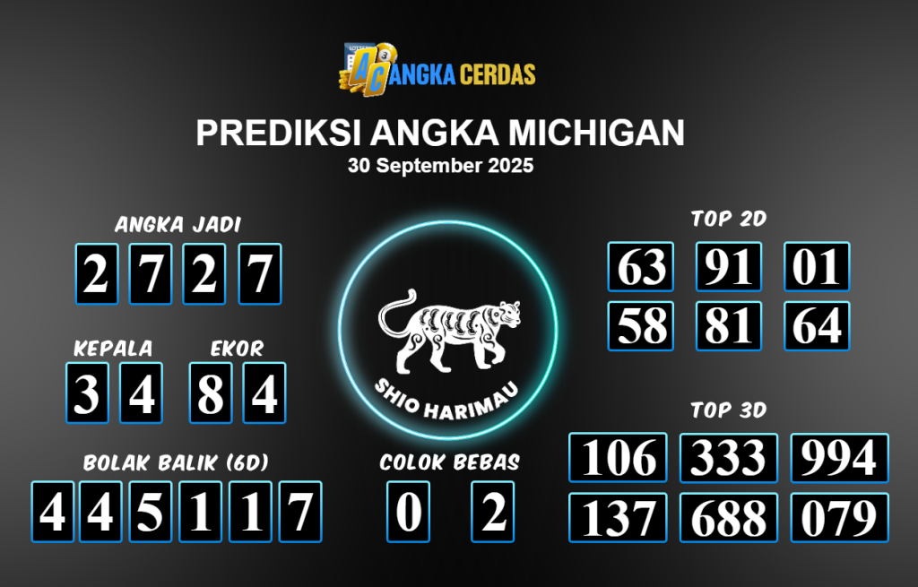 Prediksi Togel MICHIGAN untuk hari ini Selasa 30 September 2025, adalah salah