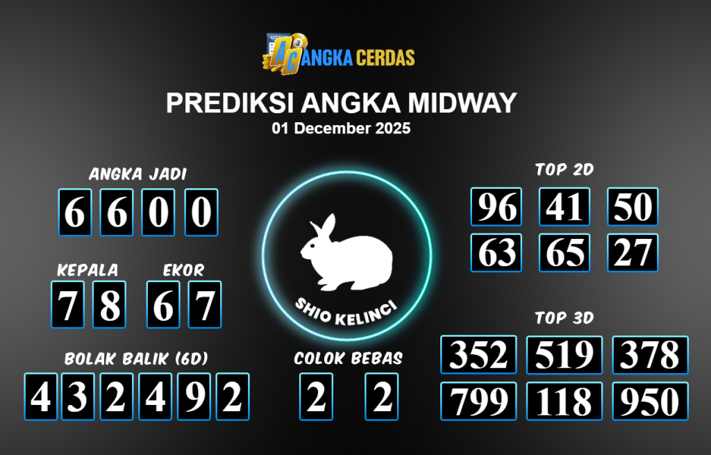 Prediksi MIDWAY Togel untuk hari ini Senin 1 Desember November 2025, adalah salah