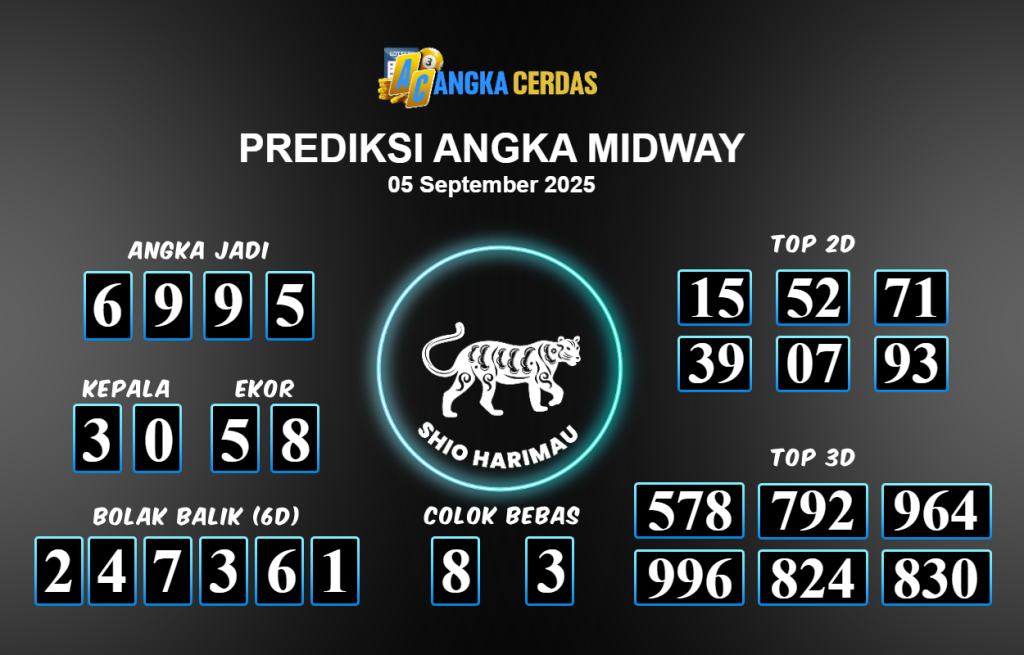 Prediksi Togel MIDWAY untuk hari ini Jumat 05 September 2025, adalah salah