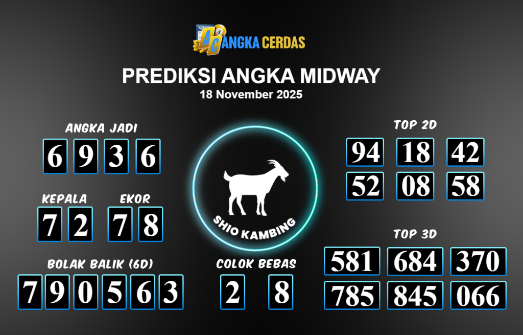 Prediksi Togel MIDWAY untuk hari ini Selasa 18 November 2025, adalah salah