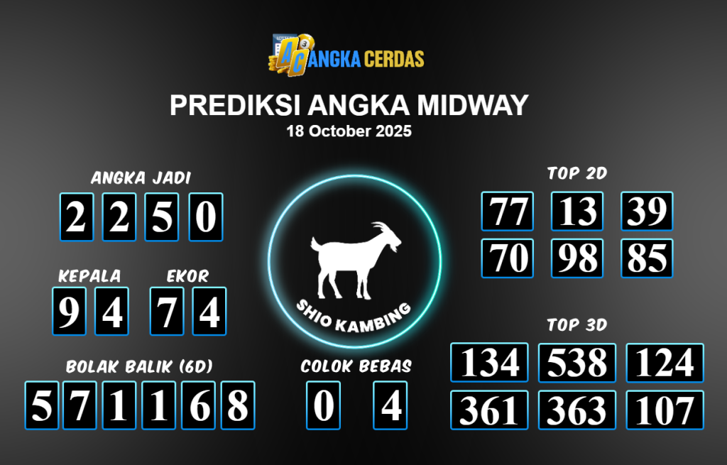 Prediksi Togel MIDWAY untuk hari ini Sabtu 18 Oktober 2025, adalah salah