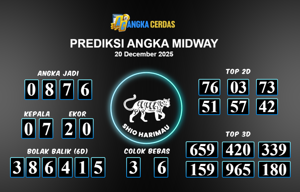 Prediksi Togel MIDWAY untuk hari ini Sabtu 20 Desember November 2025, adalah salah