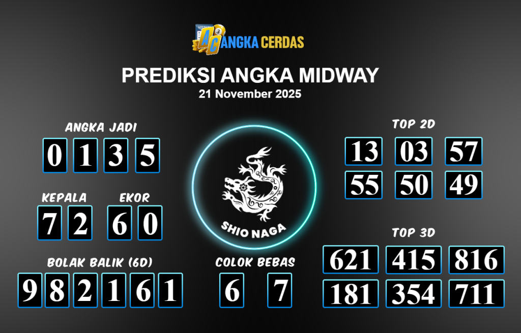 Prediksi Togel MIDWAY untuk hari ini Jumat 21 November 2025, adalah salah