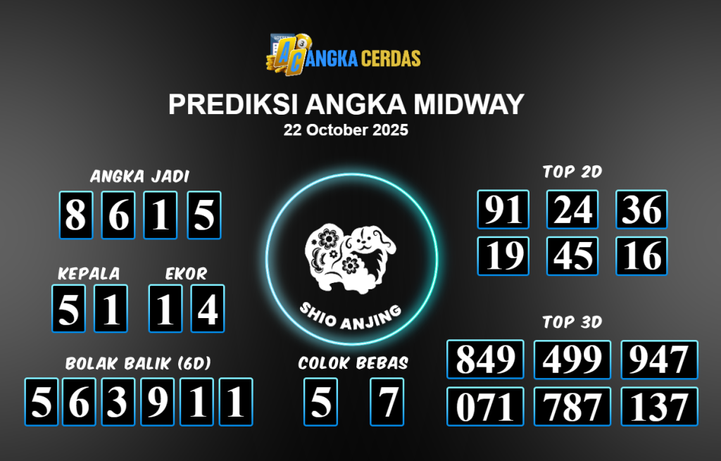 Prediksi Togel MIDWAY untuk hari ini Rabu 22 Oktober 2025, adalah salah