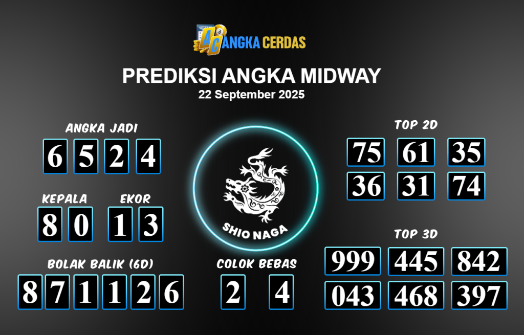 Prediksi Togel MIDWAY untuk hari ini Senin 22 September 2025, adalah salah