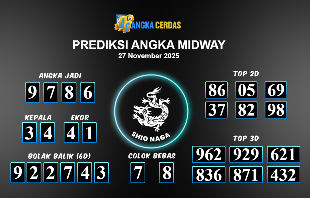 Prediksi Togel MIDWAY untuk hari ini Kamis 27 November 2025, adalah salah
