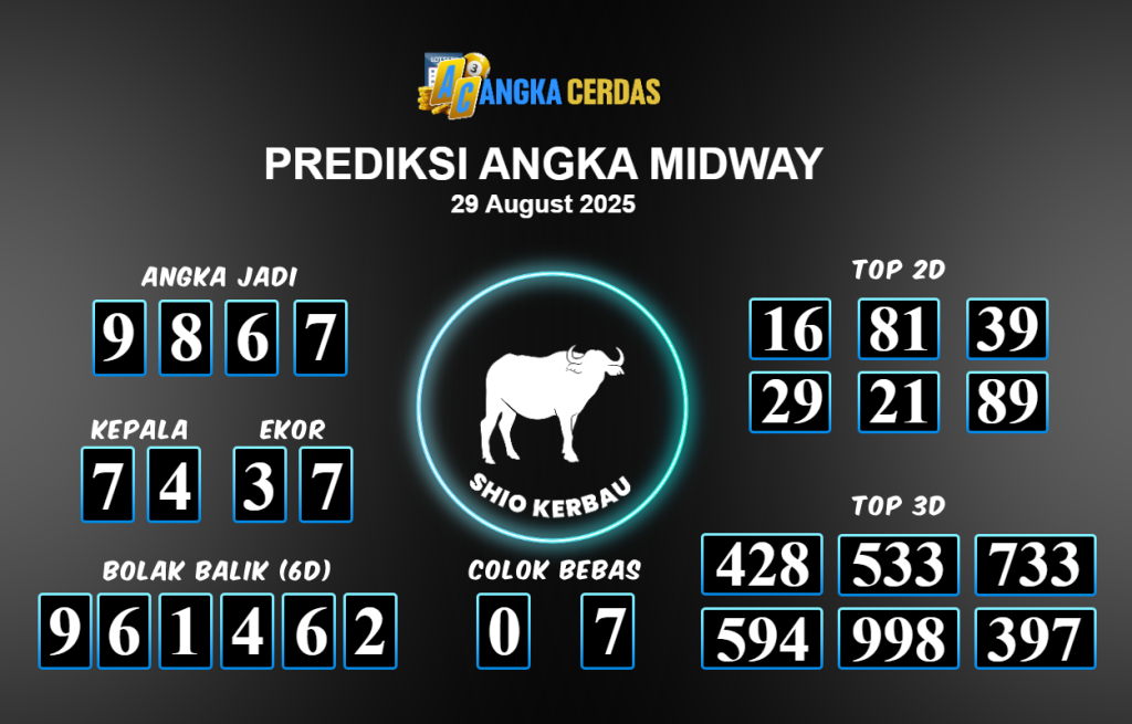 Prediksi Togel MIDWAY untuk hari ini Jumat 29 Agustus 2025, adalah salah