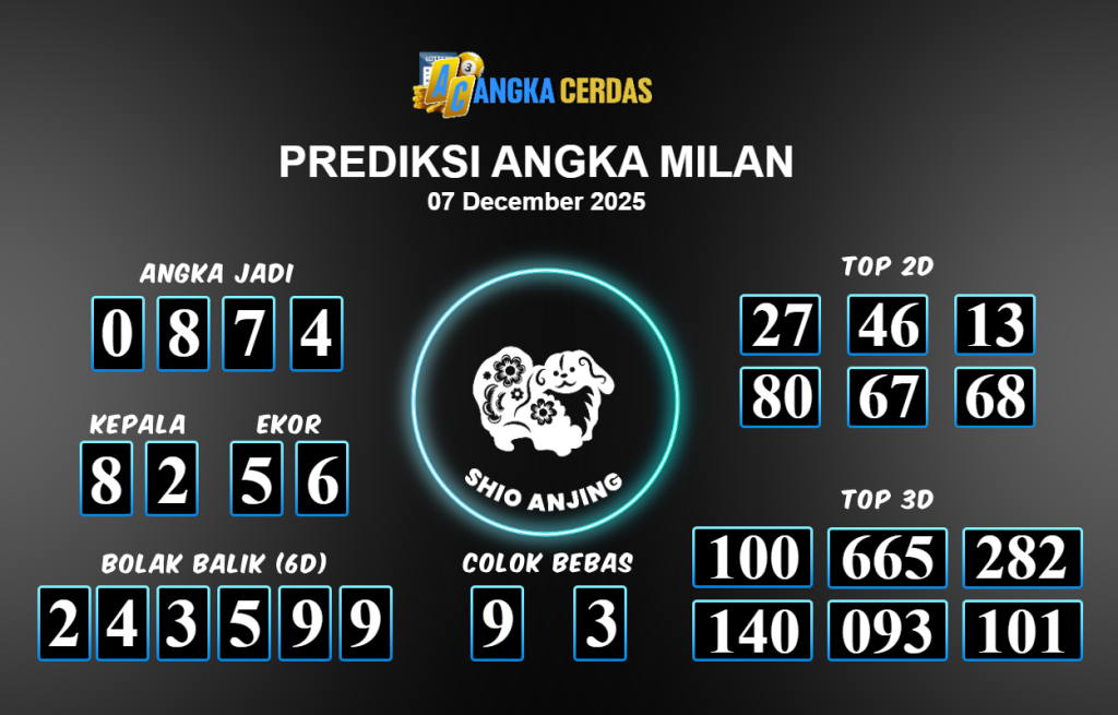 Prediksi Togel MILAN untuk hari ini Minggu 07 Desember November 2025, adalah salah