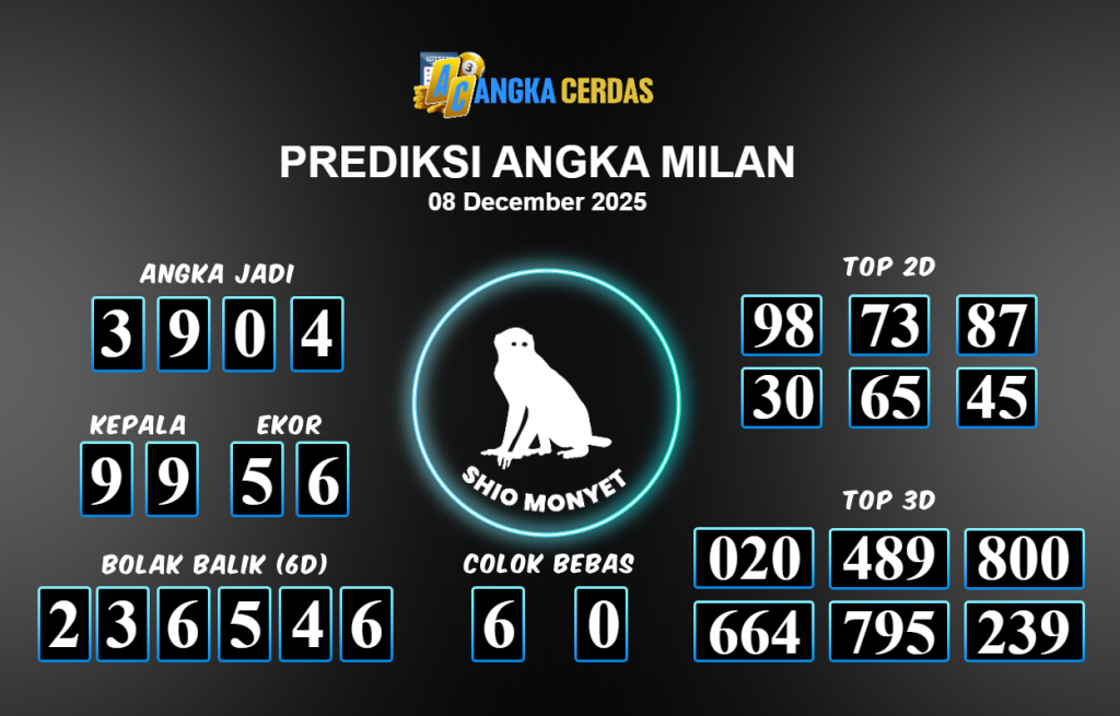 Prediksi Togel MILAN untuk hari ini Senin 08 Desember November 2025, adalah salah