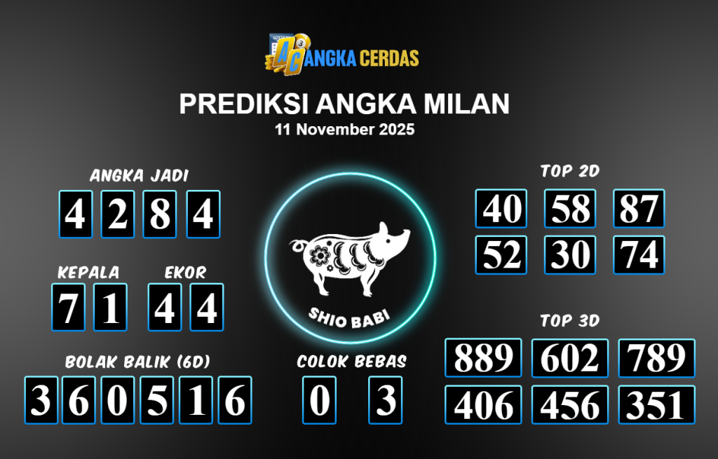 Prediksi Togel MILAN untuk hari ini Selasa 11 November 2025, adalah salah