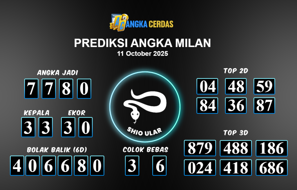 Prediksi Togel MILAN untuk hari ini Sabtu 11 Oktober 2025, adalah salah