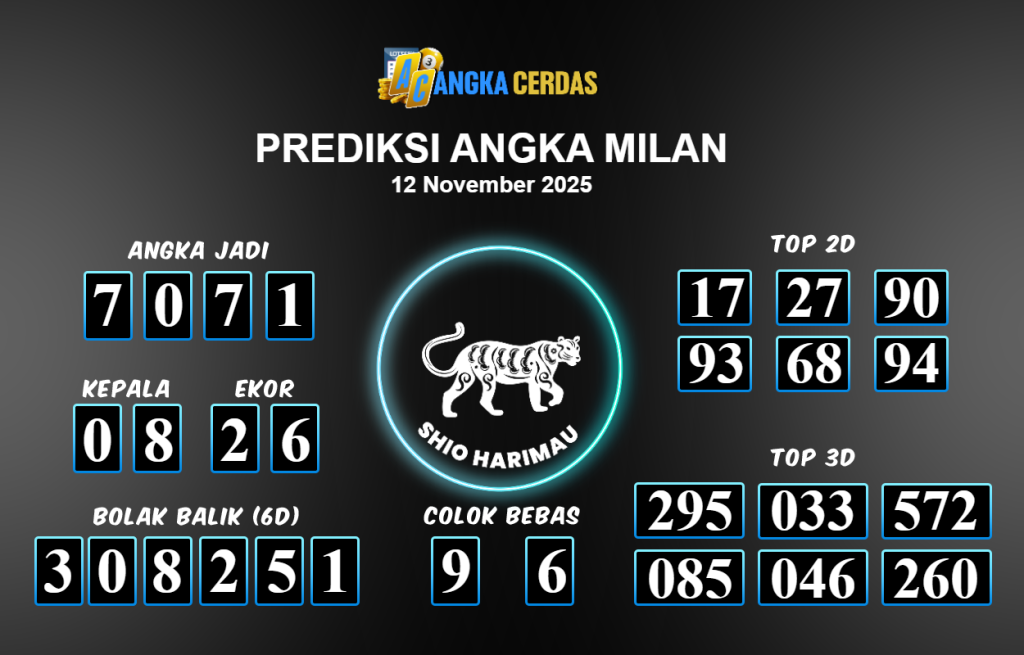 Prediksi MILAN Togel untuk hari ini Rabu 12 November 2025, adalah salah