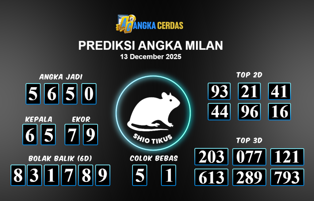 Prediksi Togel MILAN untuk hari ini Sabtu 13 Desember November 2025, adalah salah