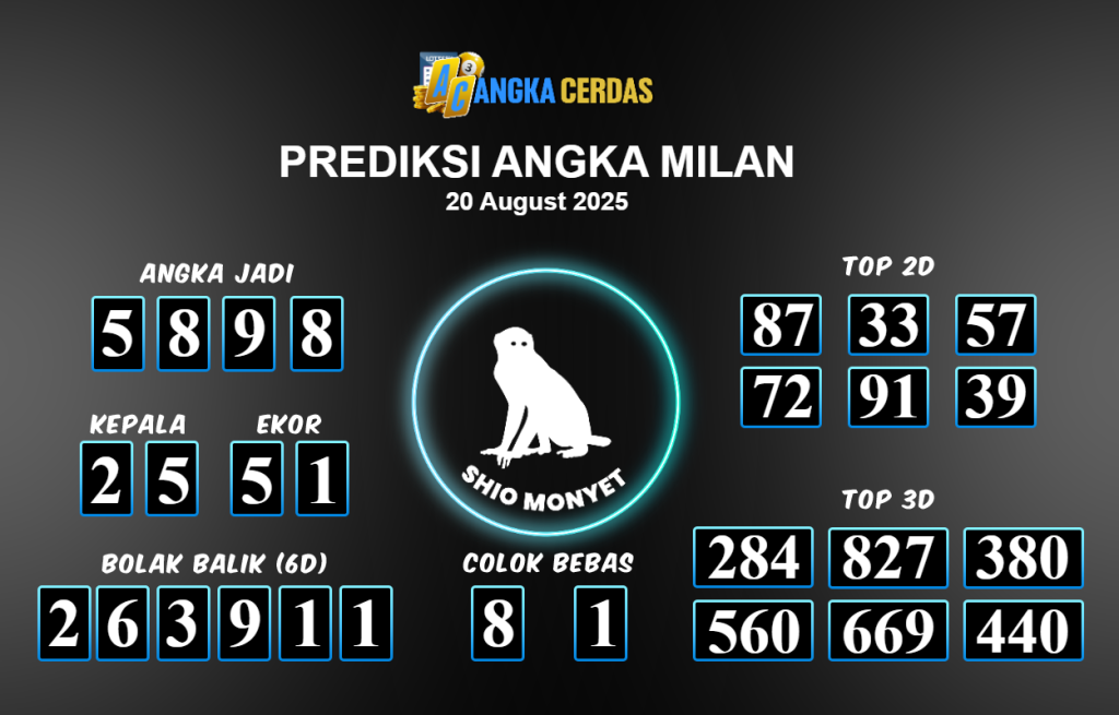 Prediksi Togel MILAN untuk hari ini Rabu 20 Agustus 2025, adalah salah