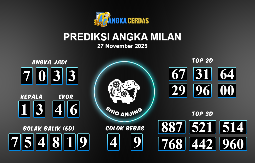Angka Cerdas : Bocoran Prediksi Togel MILAN Tanggal 27 November 2025