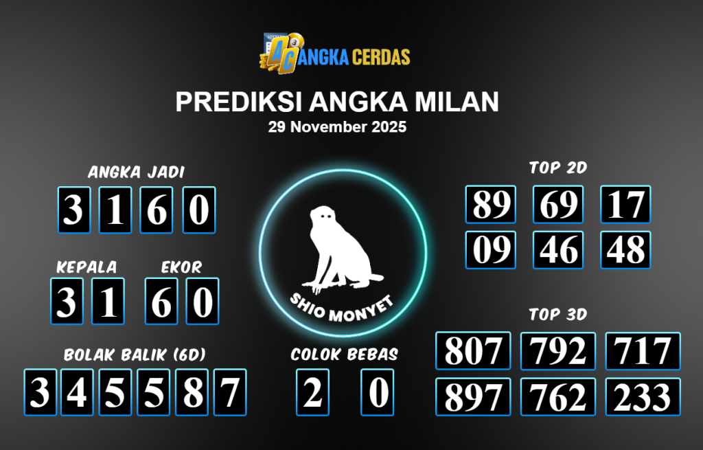 Prediksi Togel MILAN untuk hari ini Sabtu 29 November 2025, adalah salah