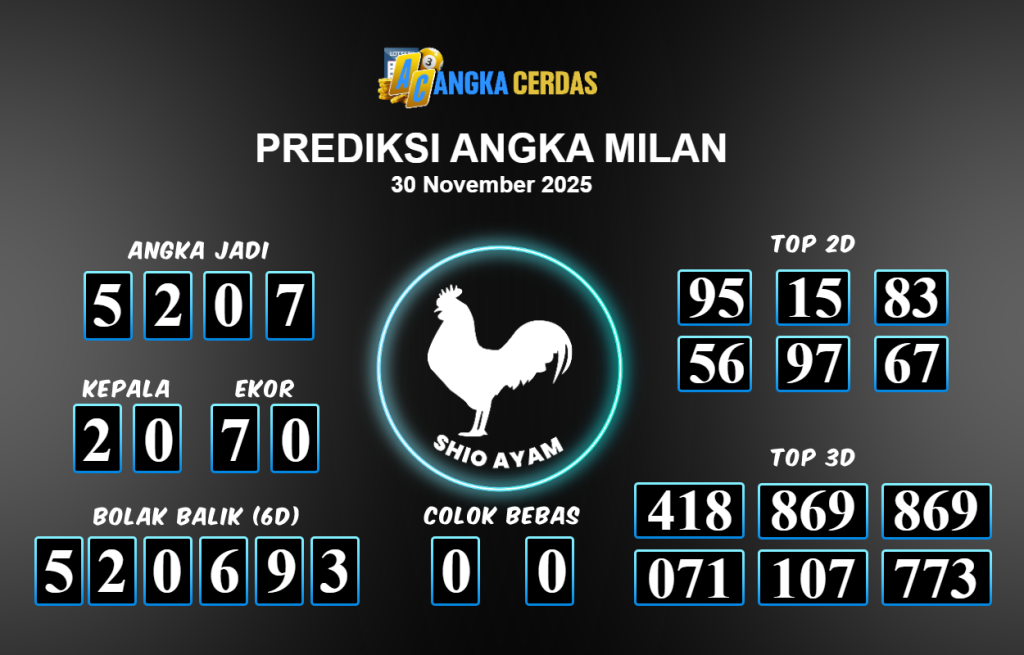 Prediksi Togel MILAN untuk hari ini Minggu 30 November 2025, adalah salah