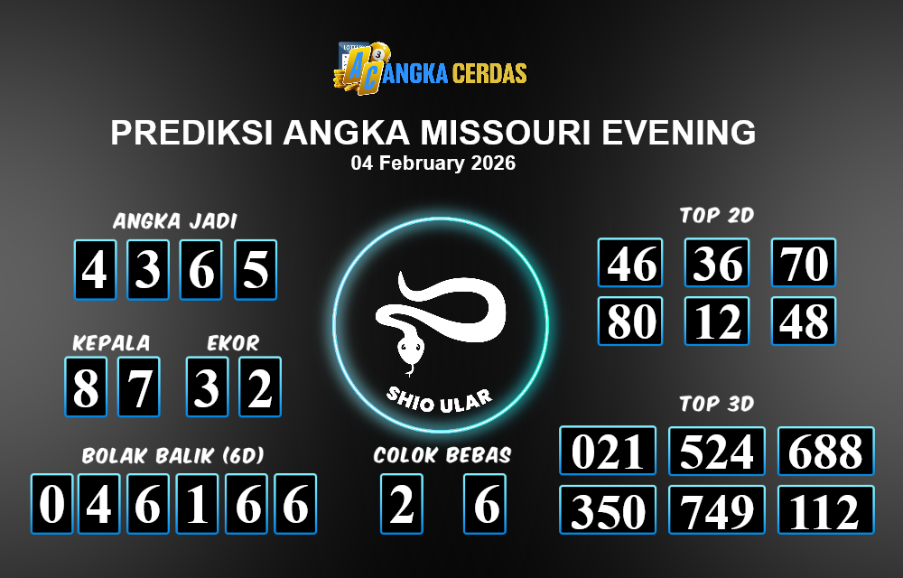 Prediksi Togel MISSOURI EVENING untuk hari ini RABU, 04 Februari 2026, adalah salah