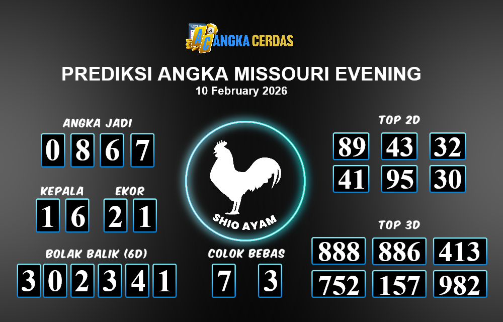 Prediksi Togel MISSOURI EVENING untuk hari ini Selasa, 10 Februari 2026, adalah salah