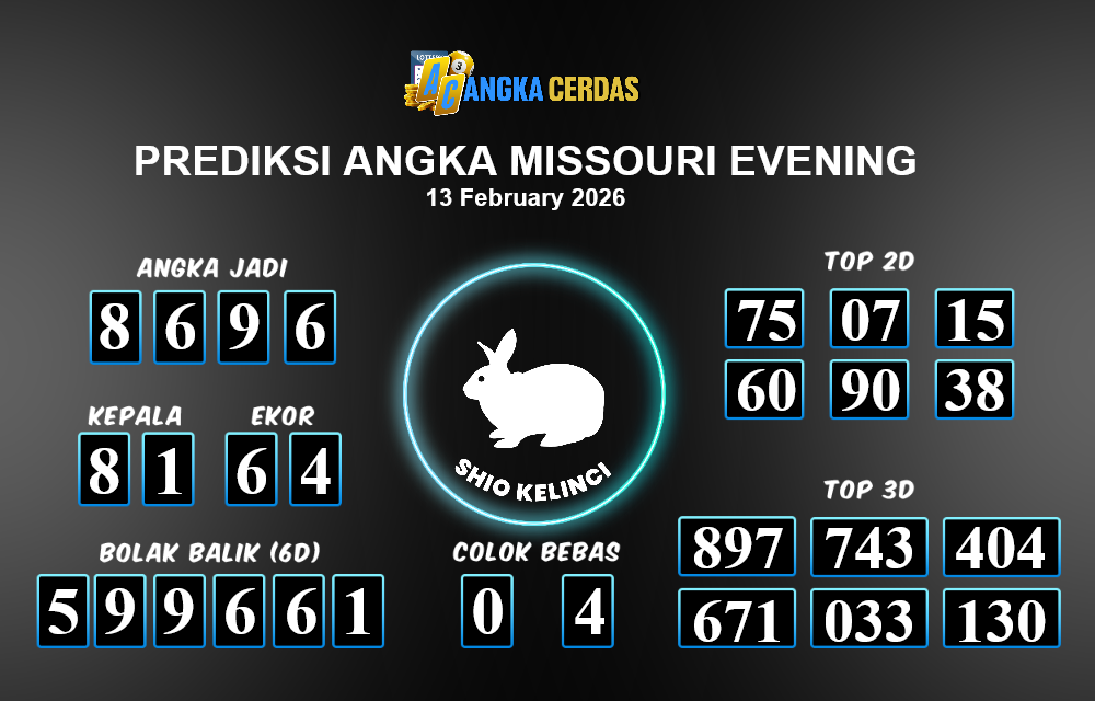 Prediksi Togel MISSOURI EVENING untuk hari ini Jumat, 13 Februari 2026, adalah salah