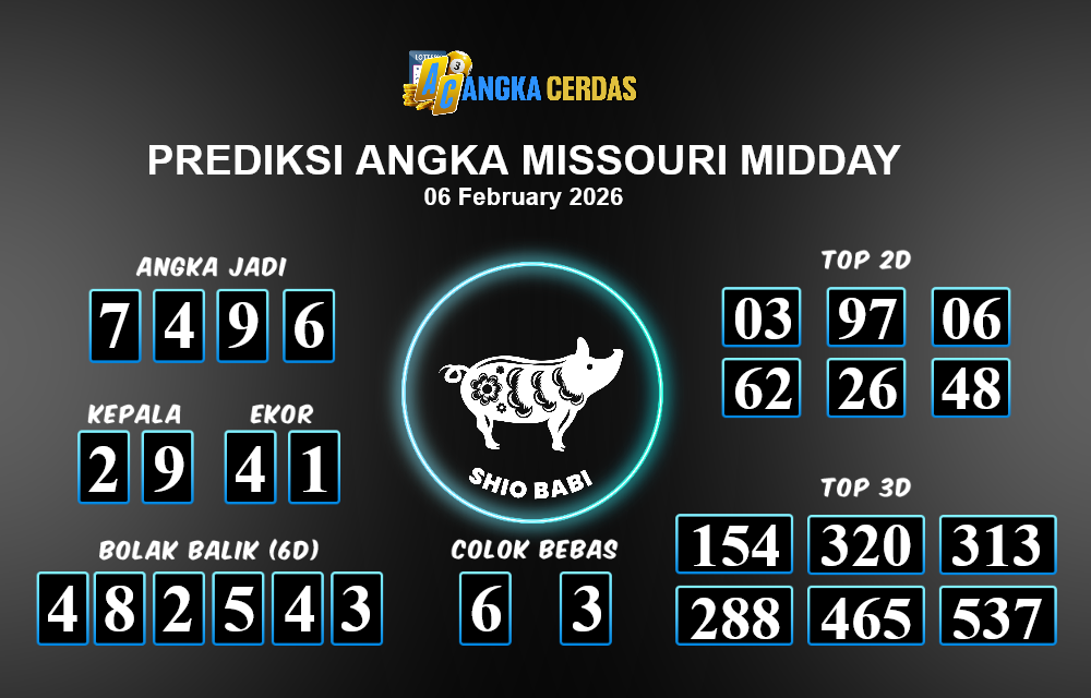 Angka Cerdas : Bocoran Prediksi Togel MISSOURI MIDDAY Tanggal 06 FEBRUARI 2026