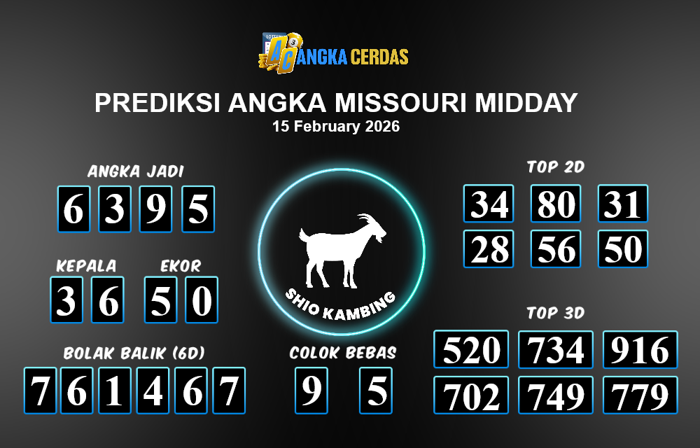 Prediksi Togel MISSOURI MIDDAY untuk hari ini Minggu, 15 Februari 2026, adalah salah