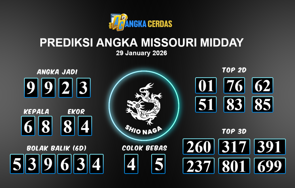 Angka Cerdas : Bocoran Prediksi Togel MISSOURI MIDDAY Tanggal 29 JANUARI 2026