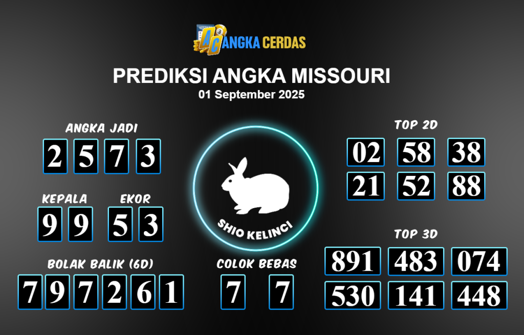 Prediksi Togel MISSOURI untuk hari ini Senin 01 September 2025, adalah salah