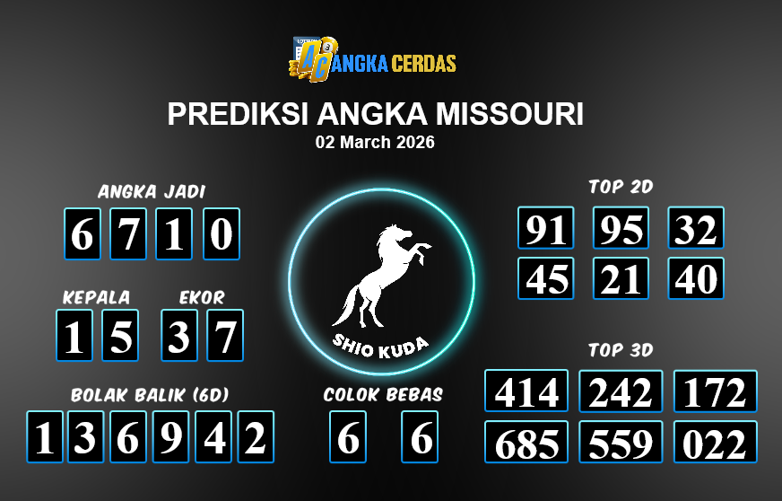 Prediksi Togel MISSOURI untuk hari ini Senin, 02 Maret 2026, adalah salah