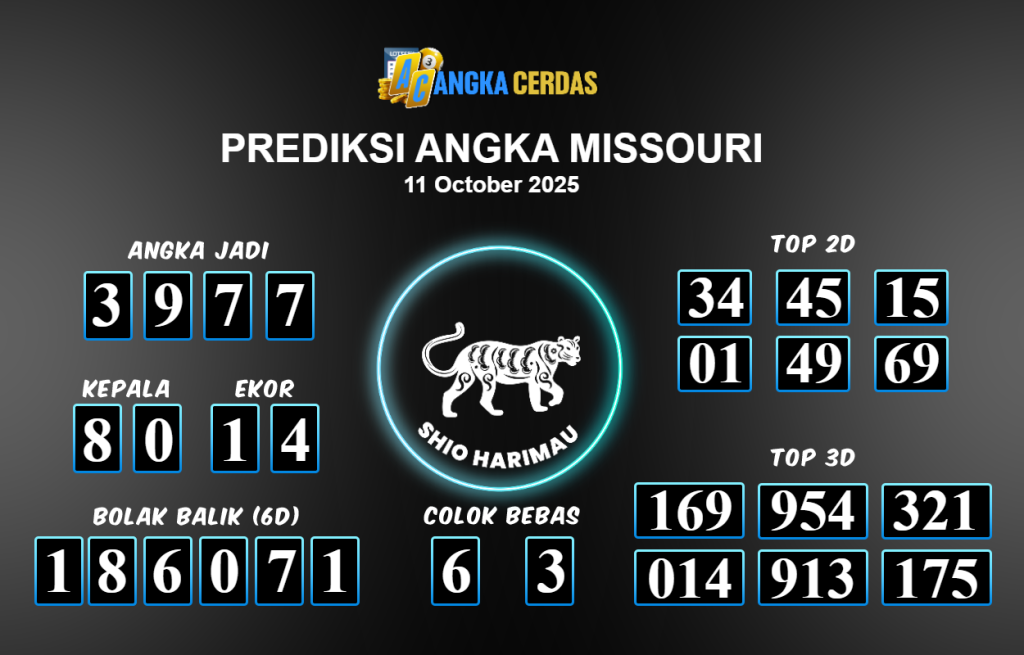 Prediksi Togel MISSOURI untuk hari ini Sabtu 11 Oktober 2025, adalah salah