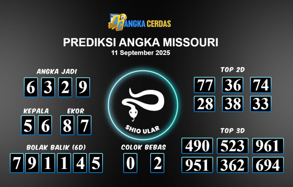 Prediksi Togel MISSOURI untuk hari ini Kamis 11 September 2025, adalah salah