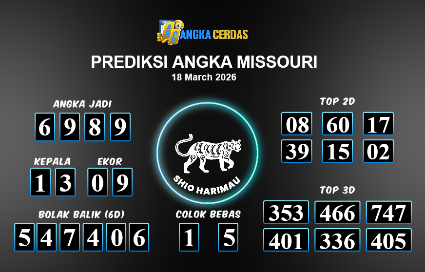 Prediksi Togel MISSOURI untuk hari ini Rabu, 18 Maret 2026, adalah salah