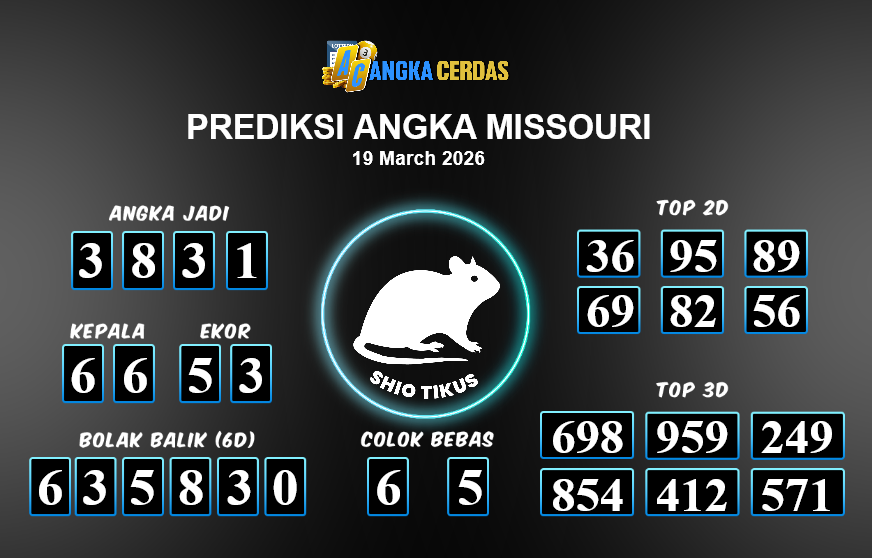 Prediksi Togel MISSOURI untuk hari ini Kamis, 19 Maret 2026, adalah salah