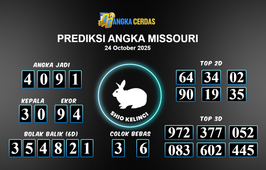 Prediksi Togel MISSOURI untuk hari ini Jumat 24 Oktober 2025, adalah salah