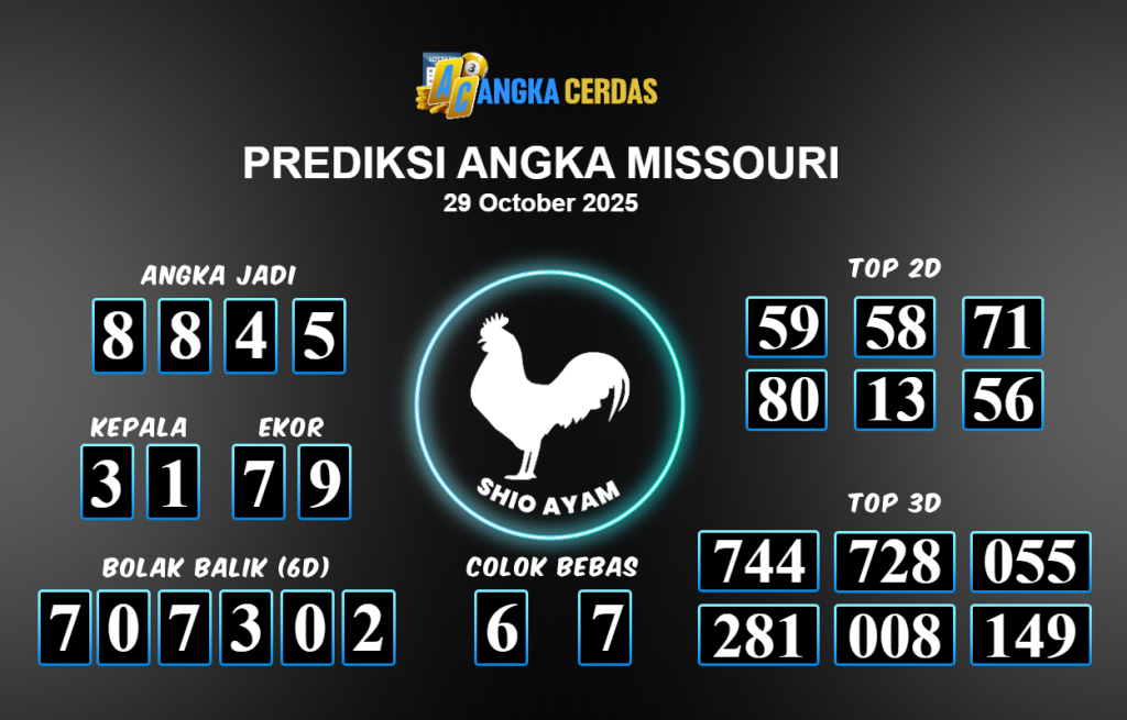 Prediksi Togel MISSOURI untuk hari ini Rabu 29 Oktober 2025, adalah salah