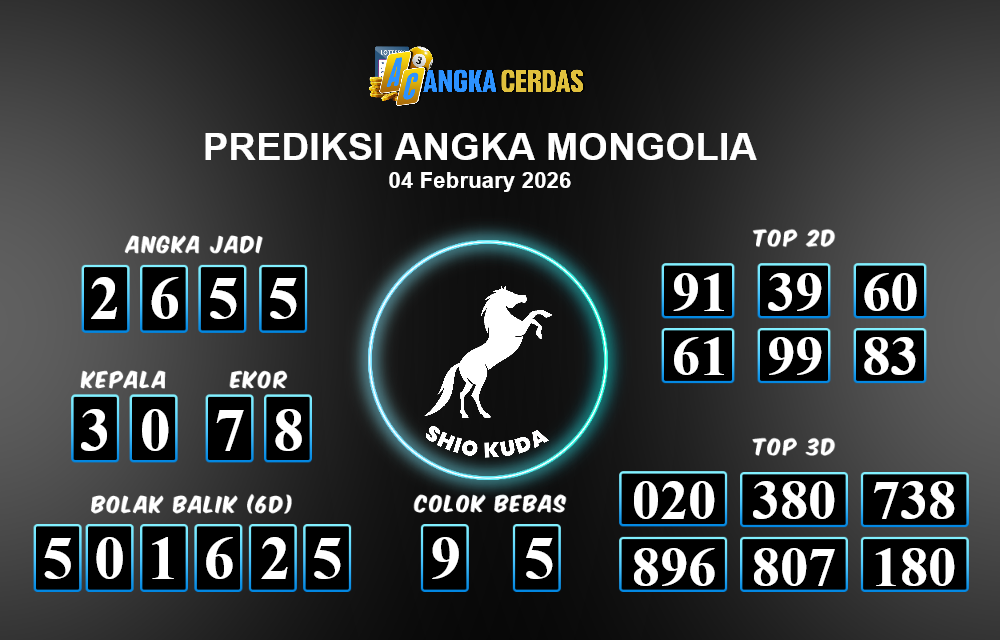 Prediksi Togel MONGOLIA untuk hari ini RABU, 04 Februari 2026, adalah salah