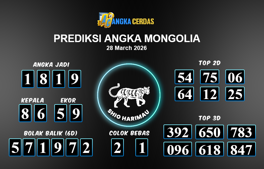 Prediksi Togel MONGOLIA untuk hari ini Sabtu, 28 Maret 2026, adalah salah