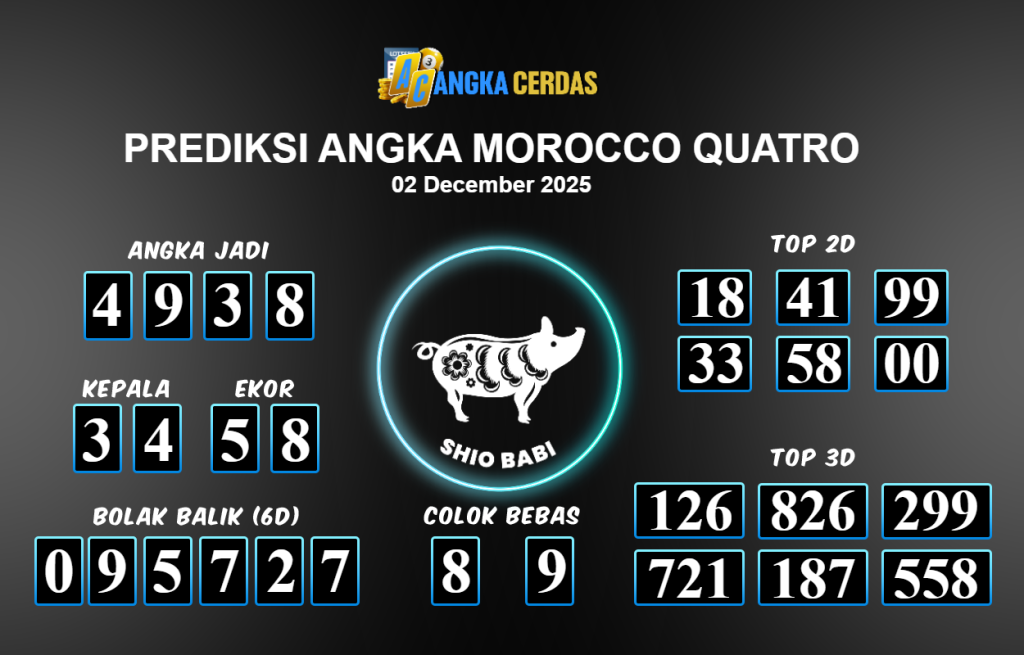 Prediksi Togel MOROCCO QUATRO untuk hari ini Selasa 02 Desember November 2025, adalah salah