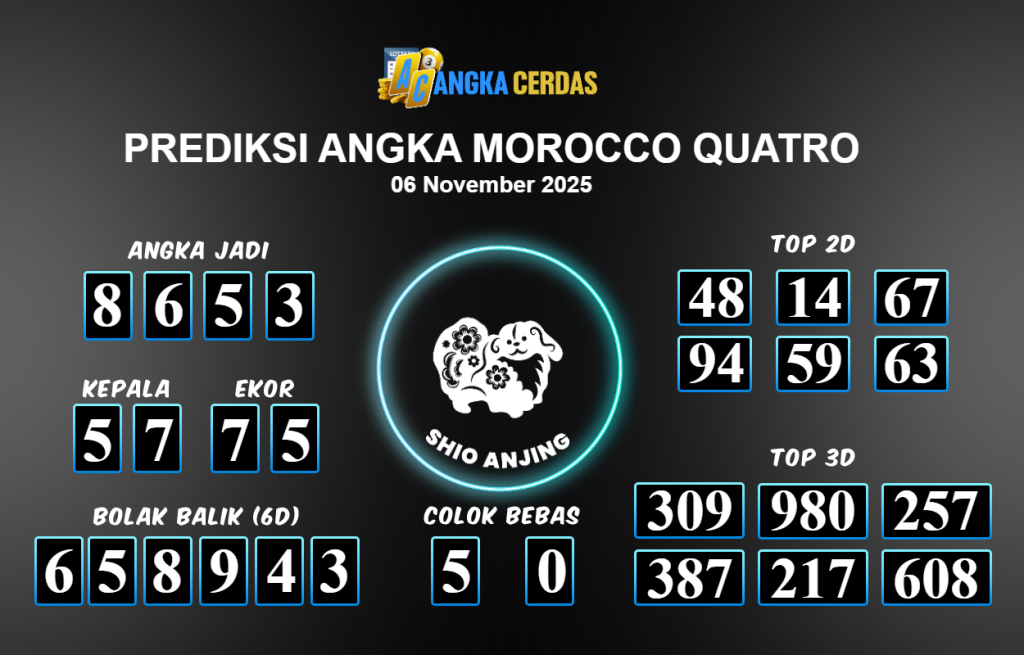 Prediksi Togel MOROCCO QUATRO untuk hari ini Kamis 06 November 2025, adalah salah